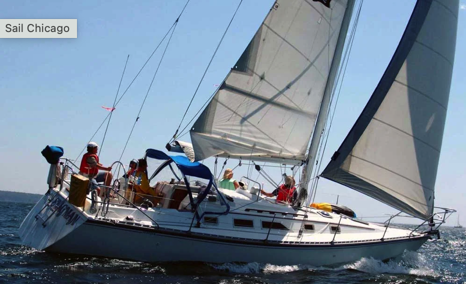 Calypso is Sail Chicago's 1993 Ericson 34 cruising sailboat built by Pacific Seacraft. She is a beautiful cruising boat that is stiff under a good breeze and ghosts along in light winds. Similar to Priorities, Calypso has sleeping room for 5, an inboard diesel, head, and fully functioning galley. Some of Sail Chicago's cruising classes are taught on Calypso.